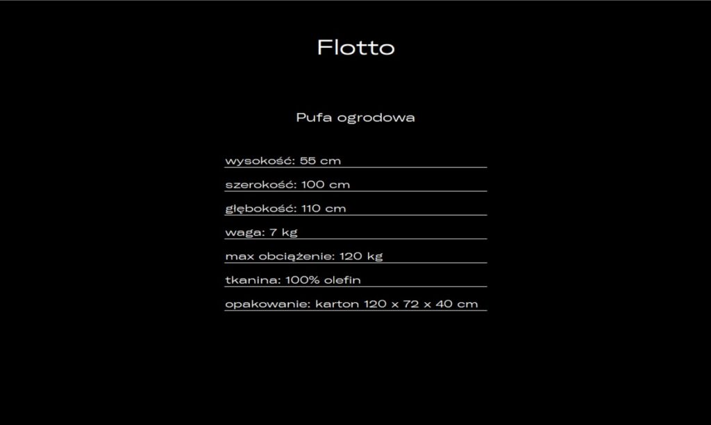 Pufa ogrodowa Flotto to produkt, który łączy w sobie funkcjonalność, design i wygodę. Odkryj nowy wymiar relaksu z Flotto – Twoim niezastąpionym towarzyszem wypoczynku!